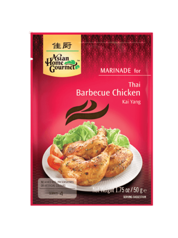 A Thai “Kai Yang” Barbecue Csirke – AHG pác és fűszerpaszta egy tradicionális thai ízvilágot megidéző keverék, amelyet kifejezetten grillezett húsételekhez, különösen csirkéhez fejlesztettek. A “Kai Yang” elnevezés Thaiföld egyik legnépszerűbb utcai ételére utal – ez a különleges pác adja a híres, füstös és édeskés ízvilágát a klasszikus thai barbecue csirkének.